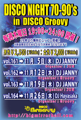¡Ú¤ª¤Ê¤¸¤ßGroovy¤Î¥Ç¥£¥¹¥³¥Ê¥¤¥È¡Û70ǯÂå¤ÎSOUL¥ß¥å¡¼¥¸¥Ã¥¯¤«¤éºÇ¿·¤ÎEDM¤Þ¤Ç¥ª¡¼¥ë¥Ò¥Ã¥È¥á¥É¥ì¡¼¡ªÍÙ¤ì¤ë¶ÊÀ¹¤êÂô»³¤Ç¤ªÂ£¤ê¤·¤Þ¤¹♬ ¡Ú¥ª¡¼¥¬¥Ê¥¤¥¶¡¼¡Û£Ê£Õ£Î ¡Ú£Ä£Ê¡ÛJANNY¡ÊMAHARAJA ROPPONGI¡Ë ¡Ú²»³Ú¡ÛALL GENRE ¡ÊSOUL¡¢Ãݤλҡ¢¥À¥ó¥¯¥é¡¢EURO¡¢HI-NRG¡¢TECHNO¡¢R&B¡¢EDM¡¢etc¡Ä¡Ë ¡Ú³«ºÅ»þ´Ö¡Û 19:00¡Á24:00 ¡ÚÎÁ¶â¡Û ÃËÀ¡§¡ï2,500/2Drinks¡Ü¥Ó¥å¥Ã¥Õ¥§ÉÕ ½÷À¡§¡ï2,000/2Drinks¡Ü¥Ó¥å¥Ã¥Õ¥§ÉÕ ¡Ê¥Ó¥å¥Ã¥Õ¥§¤Ï19»þ¤è¤ê¤´ÍѰդ·¤Þ¤¹¤¬¿ôÎ̸ÂÄê¤Ë¤Ä¤Ìµ¤¯¤Ê¤ê¼¡Â轪λ¤È¤Ê¤ê¤Þ¤¹¡Ë