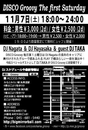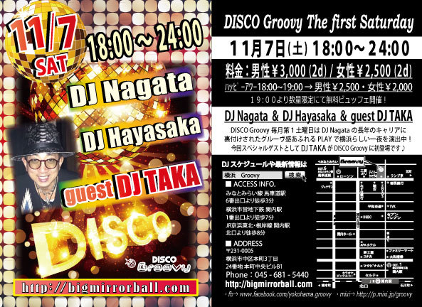 DISCO Groovy Ëè·îÂ裱ÅÚÍËÆü¤Ï¡ª¥Ï¥Þ¤Î½ÅÄáÔDJ Nagata¡Õ¤Ë¤è¤ëÄê´ü¥¤¥Ù¥ó¥È¢ö Ĺǯ¤Î¥¥ã¥ê¥¢¤Ë΢ÉÕ¤±¤µ¤ì¤¿°ÂÄê´¶È´·²¤ÊPLAY¤ò¤É¤¦¤¾¤´´®Ç½¤¯¤À¤µ¤¤¡ªº£²ó¥¹¥Ú¥·¥ã¥ë¥²¥¹¥È¤È¤·¤Æ¡ÔDJ TAKA¡Õ¤¬Groovy¤Ë½éÅоì¤Ç¤¹¡ª ¡Ú²»³Ú¡Û¥ª¡¼¥ë¥¸¥ã¥ó¥ë Dance Classics¡¢Soul¡¢Funk¡¢R&B¡¢Hip-Hop¡¢EDM¡¢House¡¢etc... ¡Ú³«ºÅ»þ´Ö¡Û 18¡§00¡Á24¡§00 ¡Ú¥Ï¥Ã¥Ô¡¼¥¢¥ï¡¼ÎÁ¶â / 18:00¡Á19:00¤Ë¤´ÍèŹ¤ÎÊý¡Û ÃËÀ¡§¡ï2,500/2Drinks¡Ü¥Ó¥å¥Ã¥Õ¥§ÉÕ ½÷À¡§¡ï2,000/2Drinks¡Ü¥Ó¥å¥Ã¥Õ¥§ÉÕ ¡ÚÎÁ¶â / 19:00°Ê¹ß¤´ÍèŹ¤ÎÊý¡Û ÃËÀ¡§¡ï3,000/2Drinks¡Ü¥Ó