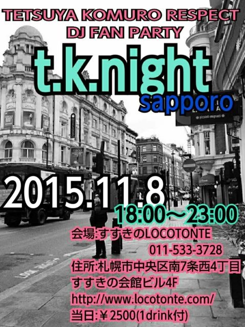 ¿ºÌ¤Ê¾®¼¼Å¯ºÈ¤µ¤ó³Ú¶ÊÁ´È̤ò¿¶¤êÊ֤ꡢÁ´¥¥ã¥ê¥¢ÂçÆÃ½¸¤Ë¤Æ¡¢ »¥Ëڤ䨶õ¤Î²¼¡¢¤¦¤º¤¯¤Þ¤ë³¹Ï©¼ù¤ÈÅà¤ë¥Ï¥È¤ò´Ñ¤Ê¤¬¤é¡¦¡¦¡¦ Íè¤ë11·î8Æü¡¢ ÆüÍˤÎÌë¤Ït.k.night¤ÇTK sound¤ò¥Õ¥í¥¢¤Ë¤Ö¤Á¤Þ¤±¡¦¡¦¡¦ ¤¹¤¹¤¤Î¤ÎÌë¤Ï¹¹¤Ê¤ë¶½Ê³¤Î¤Ò¤È¤È¤¤Ø¡ª ¡È»¥ËÚt.k.night vol.17¡É Æü»þ¡§2015ǯ11·î8Æü(Æü)18:00¡Á23:00¡ª ²ñ¾ì¡§¤¹¤¹¤¤ÎLOCOTONTE¡¡011-533-3728 ½»½ê¡§»¥ËÚ»ÔÃæ±û¶èÆî7¾òÀ¾4ÃúÌܤ¹¤¹¤¤Î²ñ´Û¥Ó¥ë4F http://www.locotonte.com/ ÅöÆü¡§¡ï2500(1drinkÉÕ¡ÈRAINBOW RAINBOW¥«¥¯¥Æ¥ë¡É´Þ¤à) DJ¡§Ì¥ÏǤΥ¯¥Ë¥ª¡é¡¿etc ¢¨¾å