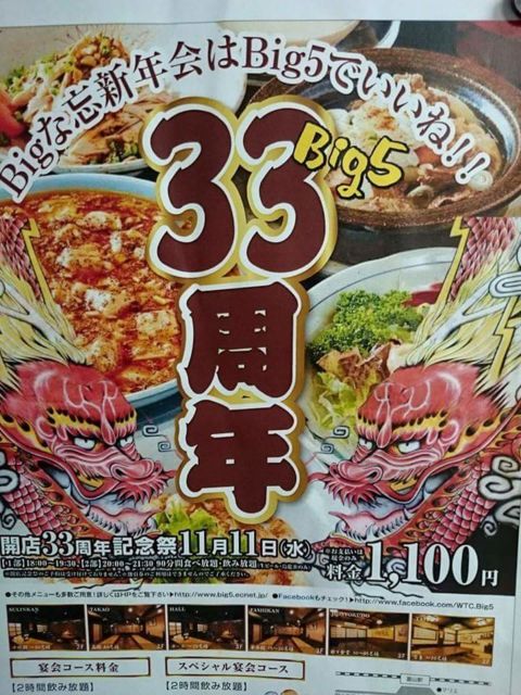 ³«ºÅ¤¬¤´Ìµº»ÂÁ¾õÂ֤ˤʤäƤޤ¹¤¬(¥¹¥¤¥Þ¥»¥ó¡Ä¡£)º£Ç¯¤â¤³¤Î´ë²è¹Ô¤¯¤Ë¤¢¤¿¤ê¡¢µ×¡¹¤Ë¥¤¥Ù¥ó¥ÈΩ¤Æ¤Þ¤¹¤è big5¤Î¼þǯº×¡ªºòǯ¤È¤Æ¤âÎɤ«¤Ã¤¿¤Î¤Çº£Ç¯¤â¹Ô¤¤Þ¤·¤ç¤¦¢ö Ãæ²Ú¤¬¥á¥¤¥ó¤Î¤ªÅ¹¤Ç¤¹¡£ ¤³¤ÎÆü¸Â¤ê¤Î¼þǯº×¡£90ʬ´Ö¿©¤ÙÊüÂê°û¤ßÊüÂê1100±ß!!(°û¤ßÊüÂê¤Ï¥Ó¡¼¥ë¡¦±¨Î¶Ãã¤Î¤ß) ÀäÂФªÆÀ¤Ç¤·¤ç¤¦¡ª¤¿¤À¡¢Í½Ìó¤ÏÉԲġ£19»þ¤«¤éʤó¤ÇÂÔ¤Á¤Þ¤¹¡£ ¼Ì¿¿¤Ïºòǯ¤Î¤â¤Î¤Ç¤¹¡£Ê¿ÆüÌë¤Ë¡¢³Ú¤·¤¯¤ä¤Ã¤Á¤ã¤¤¤Þ¤·¤ç¤¦¢ö¿¿ô¤Î»²²Ã¤ªÂÔ¤Á¤·¤Æ¤Þ¤¹!! »²²Ã¿½¹þ¤ß¡¢¥á¥Ã¥»¡¼¥¸¤Ç¤â¥ª¥Ã¥±¡¼¤Ç¤¹¤è¡£