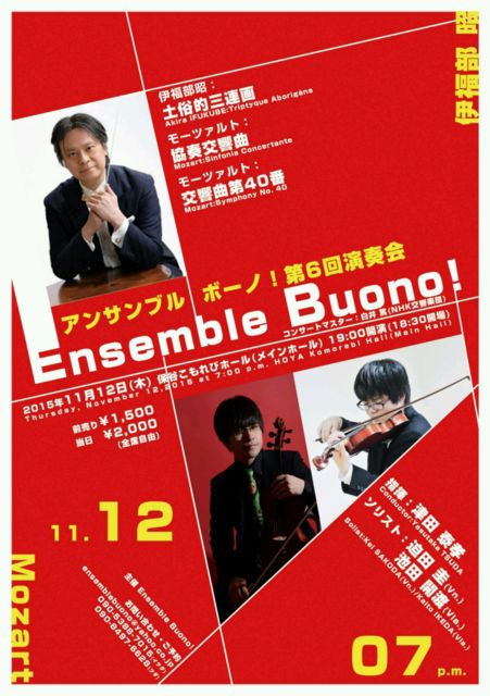 °ËÊ¡Éôδɧ¤Î½¾·»Äï¡¢ºî¶Ê²È¡¦°ËÊ¡Éô¾¼¤Î½é´ü¤Î·æºî¡¡¡ØÅÚ¯Ū»°Ï¢²è¡Ù¤ò±éÁÕ¤·¤Þ¤¹¡£ »Ø´ø¼Ô¤Ï¡¢°ËÊ¡ÉôδɧÅÁÆ»¸µÁµ¤ò±«µÜÂè»ü¤Ë³Ø¤ó¤ÀÄÅÅÄÂÙ¹§¡£ ¡¦¡¦¡¦¡¡¡¡¡¡¡¦¡¦¡¦¡¡¡¡¡¡¡¦¡¦¡¦ ¥¢¥ó¥µ¥ó¥Ö¥ë¡¦¥Ü¡¼¥Î¡ª Â裶²ó±éÁÕ²ñ 2015ǯ11·î12Æü(ÌÚ) 19»þ³«±é18»þȾ³«¾ì ÊÝ뤳¤â¤ì¤Ó¥Û¡¼¥ë(¥á¥¤¥ó¥Û¡¼¥ë) Á°Çä¤ê¡ï1¡¤500 ÅöÆü ¡ï2¡¤000 Á´Àʼ«Í³ ¶ÊÌÜ °ËÊ¡Éô¾¼ ¡ØÅÚ¯Ū»°Ï¢²è¡Ù Akira Ifukube ¡«Triptyque Aborigene¡« ¥â¡¼¥Ä¥¡¥ë¥È ¶¨ÁÕ¸ò¶Á¶Ê Mozart Sinfonia Concertante ¥â¡¼¥Ä¥¡¥ë¥È ¸ò¶Á¶ÊÂ裴£°ÈÖ M