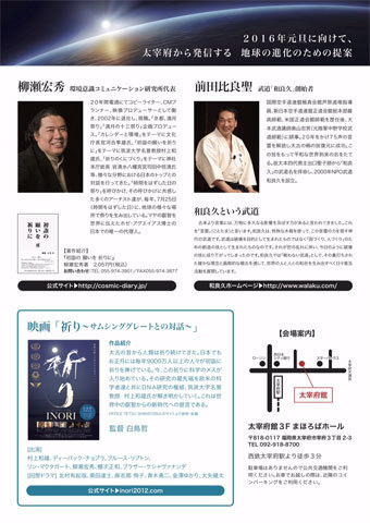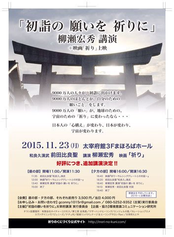 ¡Ú½é·Ø¤Î´ê¤¤¤òµ§¤ê¤Ë¡ÛÂÀºËÉֱܹé²ñ¡Ü±Ç²è¡Öµ§¤ê¡×¤ò 2015ǯ11·î23Æü(·î)¶ÐÏ«´¶¼Õ¤ÎÆü¤Ë³«ºÅ¤·¤Þ¤¹¡ª¡ª ¢£ ËèǯÌó200Ëü¿Í¤¬¤ªÀµ·î»°¥öÆü¤Ë½é·Ø¤Ëˬ¤ì¤ëÂÀºËÉÜÅ·ËþµÜ¤¬¤¢¤ë ÂÀºËÉܤÎÃÏ¤Ë¤Æ ÌøÀ¥¹¨½¨»á¤Î¹Ö±é¡Ö½é·Ø¤Î ´ê¤¤¤ò µ§¤ê¤Ë¡×¤È ÇòÄ»´ÆÆÄ¤Î±Ç²è¡Öµ§¤ê¡Á¥µ¥à¥·¥ó¥°¥°¥ì¡¼¥È¤È¤ÎÂÐÏáÁ¡×¾å±Ç²ñ ¤ò³«ºÅ¤¤¤¿¤·¤Þ¤¹¡£ ÉðÆ»¡ÖÏÂÎɵס×ÁÏ»Ï¼Ô Á°ÅÄÈæÎÉÀ»ÀèÀ¸¤â¤´»²²Ã¤¤¤¿¤À¤¯¤³¤È¤Ë¤Ê¤ê¤Þ¤·¤¿¡£ ¡ÖÏÂÎɵספϡ¢·Î¸Å¤¬¡Öµ§¤ê¡×¤Ê¤Î¤Ç¤¹¡£ £²£°£±£°Ç¯¡¢£²£°£±£±Ç¯¡¢£²£°£±£²Ç¯¤ÎÅìµþ¤Ç¤Î¡Ö½é·Ø¤Î ´ê¤¤¤ò µ§¤ê¤Ë¡×¹Ö±é²ñ¤Ç Á°ÅÄÀèÀ¸
