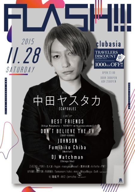 Ä̾ïÎÁ¶â3,000±ß¤Î¤È¤³¤í¡¢ ¥á¥Ã¥»¡¼¥¸¤¤¤¿¤À¤±¤ì¤Ð2,000±ß¤Ë¤Æ¤´°ÆÆâ²Äǽ¤Ç¤¹¡ª ¶½Ì£¤¢¤ëÊý¤ÏÂåɽ¼Ô¤ÎÊý¤Î¤ªÌ¾Á°¡Ê¥«¥¿¥«¥Ê¡Ë¤È¤ªÏ¢¤ìÍͤοͿô¤ò½ñ¤¤¤Æ ¤ªµ¤·Ú¤Ë¥á¥Ã¥»¡¼¥¸¤¯¤À¤µ¤¤¡ª °Ê²¼¡¢¥¤¥Ù¥ó¥È¾ÜºÙ¤Ç¤¹¡ª FLASH!!! 2015-11-28(Sat) OPEN 23:00 @½Âëclubasia ¢£DOOR 3,000±ß ¢£ADV 2,500±ß CLUB¥·¡¼¥ó¤«¤éJ-POP¥·¡¼¥ó¤òͤ¨À¤Âå¤òͤ¨¤ë¡¢¥·¡¼¥óºÇÀèü¤Î¥µ¥¦¥ó¥É¤òÄ󶡤·Â³¤±¤ëÃæÅĥ䥹¥¿¥«(CAPSULE)¤¬Â£¤ë½µËöÍ£°ì¤Î"RESIDENT PARTY" LINE UP¤Ë¤Ï¹ñÆâ¡¢¹ñ³°¤Ç¿ô¡¹¤Î¥ê¥ß¥Ã¥¯¥¹¤ò¼ê³Ý¤±¤ëGikyo Nakamura¤ÈThreepee Boy