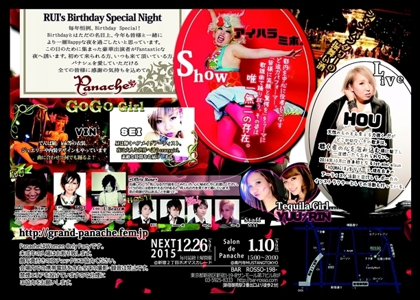 ¢¨³«ºÅ¾ì½ê¤¬º£²ó¤Î¤ßÊѹ¹¤Ë¤Ê¤ê¤Þ¤·¤¿¡£ ½é»²²Ã¤ÎÊý¤È¤ª1¿Í»²²Ã¤ÎÊý¤â°Â¿´¡£¥¹¥¿¥Ã¥Õ¤¬½Ð²ñ¤¤¤Î¤ª¼êÅÁ¤¤¤ò¤·¤Þ¤¹¡ª ¥é¥¦¥ó¥¸¥¿¥¤¥à¤Ï¤æ¤Ã¤¿¤ê¤ªÏ䬤Ǥ¡¢¥¯¥é¥Ö¥¿¥¤¥à¤Ï¤ß¤ó¤Ê¤ÇÄ«¤Þ¤ÇÍÙ¤êÌÀ¤«¤½¤¦♫¤É¤Ê¤¿¤Ç¤â¥¹¥Æ¡¼¥¸¤ÇÍÙ¤ì¤Þ¤¹¡£ ¿·½É2ÃúÌÜÉÕ¶á¤Î³«ºÅ¤Ç¶á¤¯¤ÎBar¤â³Ú¤·¤á¤Þ¤¹¡ú 11/28(ÅÚ)Panache RUI's Birthday Special Night ¡÷¿·½É¸æ±ñ¥í¥Ã¥½ OPEN21:00 Ëèǯ¹±Îã¡¢Birthday Special¡ª º£Ç¯¤â³§ÍͤȰì½ï¤Ë¡¢¤è¤ê°ìÁØHappy¤ÊÌë¤ò²á¤´¤·¤¿¤¤¤È»×¤Ã¤Æ¤¤¤Þ¤¹¡£ ¤³¤ÎÆü¤Î¤¿¤á¤Ë½¸¤Þ¤Ã¤¿¹ë²Ú½Ð±é¼Ô¤¬Fantastic¤ÊÌë¤Ø³§ÍͤòͶ¤¤¤Þ