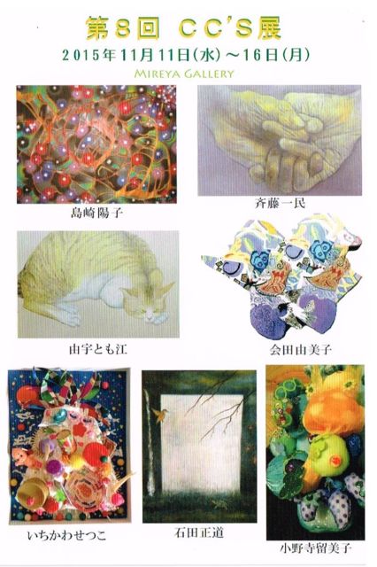 cc’s展 (武蔵野美術大学通信科卒業生展) http://photo.mixi.jp/view_album.pl?album_id=500000097471082&owner_id=6660735 2015.11.11〜16 会田由美子 石田正道 いちかわせつこ 小野寺留美子 斉藤一民 島崎陽子 由宇とも江