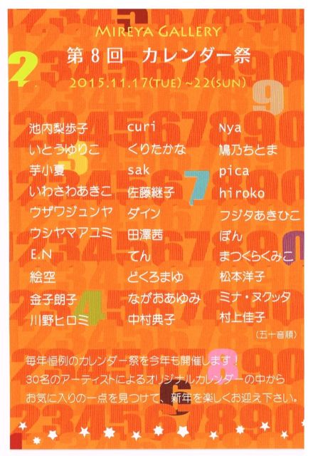 カレンダー祭・せいざん展 http://photo.mixi.jp/view_album.pl?album_id=500000097584387&owner_id=6660735 2015.11.17〜22