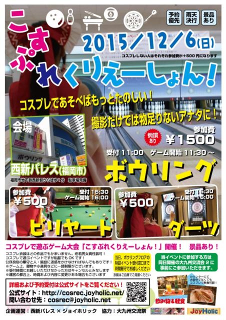 ¥³¥¹¥×¥ì¤ÇÍ·¤Ü¤¦¡ª¤ò¥Æ¡¼¥Þ¤È¤·¤¿¿·´ë²è¤Ç¤¹¡£ »£±Æ¥á¥¤¥ó¤Î¥¤¥Ù¥ó¥È¤È¤Ï°ã¤¦¡¢Í·¤Ó¤Ê¤¬¤é¥³¥ß¥å¥Ë¥±¡¼¥·¥ç¥ó¤·¤è¤¦¡ª http://cosrec.joyholic.net/ ¥²¡¼¥àÂå¤ËÂߤ··¤Âå¤â¥»¥Ã¥È¤ÇÄ̾ï¤è¤ê¤â¥ª¥È¥¯¤Ç¤¹¡£ ¥Ü¥¦¥ê¥ó¥°¤Î¤Û¤«¡¢¥À¡¼¥Ä¤ä¥Ó¥ê¥ä¡¼¥É¤ÎÂç²ñ¤â¤ä¤ê¤Þ¤¹¡ª ¤½¤ì¤¾¤ì¹ë²Ú·ÊÉʤ¢¤ê¡ª ¥Ü¥¦¥ê¥ó¥°¤Ë»²²Ã¤µ¤ì¤¿Êý¤ÏÃó¼ÖÂå2»þ´Ö̵ÎÁ¡ª ¢¨¥³¥¹¥×¥ì¤·¤Æ¤¤¤Ê¤¯¤Æ¤â»²²Ã¤Ç¤¤Þ¤¹ ¥³¥¹¥×¥ì¤µ¤ì¤Ê¤¤Êý¤Ï»²²ÃÈñ¤¬¡Ü500±ß¤«¤«¤ê¤Þ¤¹¤¬¡¢ ¤³¤Á¤é¤Ç»²²ÃɽÌÀ夤¤¿Êý¤Ï¡Ü500±ß¤¬¤«¤«¤ê¤Þ¤»¤ó¡ª ¤½¤ì¤¾¤ì»²²Ã¤Ç¤¤ëÄê°÷¿ô¤¬¤´¤¶¤¤¤Þ