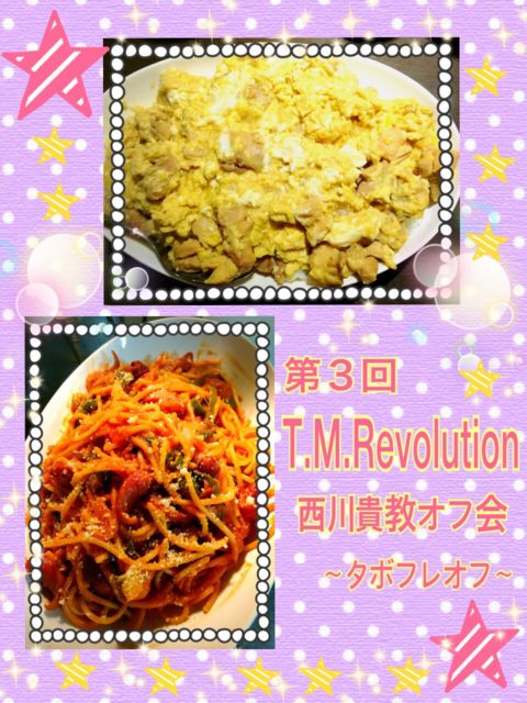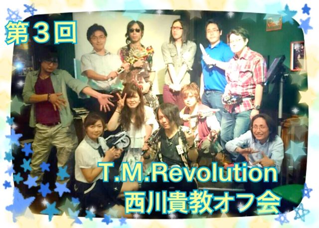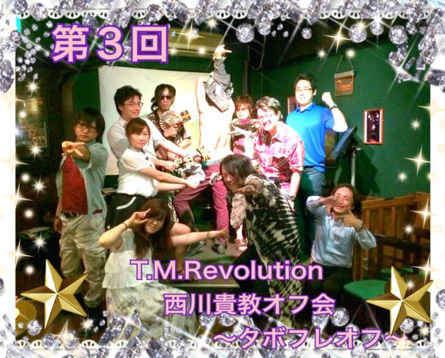 第4回【T.M.Revolution/西川貴教オフ会〜タボフレオフ〜】ドタ参加OK♪ ●幹事からのコメント● 幹事のエンペラー黒炎竜といいます T.M.Revolutionを通し、ファンの方と楽しい時間を一緒に過ごしたく、第4回目を開催させて頂くことになりました(^○^)これをきっかけに「タボフレ」を作ってみては如何でしょうか? メジャーデビュー前から大好きだった方も、最近好きになった方も関係ありません・・・! 皆で楽しい時間を過ごし、皆様がT.M.Revolutionを通して仲良くなれればと思っております 参加者の