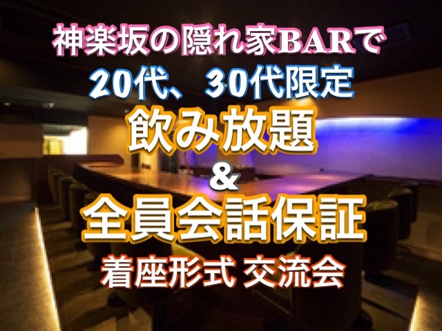 大人気、落ち着いた雰囲気の隠れ家BARで恋活を楽しんじゃいましょう! スタッフが全員会話できるようにご案内いたしますので、なかなか自分から話しかけに行けないという方も安心してご参加いただけます! お一人からの参加歓迎です!(ほとんどが1人で初参加です) お気軽にご参加ください♪ ◆女性は先着5名まで早割 ◆全員会話保証 ◆おしゃれで落ち着いた隠れ家BAR ◆20代・30代限定 ◆種類豊富な飲み放題 ◆料理(6品以上) ◆着座形式(スタッフの誘導で座席移動あり) ◆性格・相性の分かる占いレポート付(参加者のみに後日