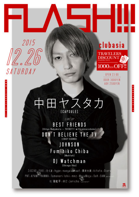 Ä̾ïÎÁ¶â3,000±ß¤Î¤È¤³¤í¡¢ ¥á¥Ã¥»¡¼¥¸¤¤¤¿¤À¤±¤ì¤Ð2,000±ß¤Ë¤Æ¤´°ÆÆâ²Äǽ¤Ç¤¹¡ª ¶½Ì£¤¢¤ëÊý¤ÏÂåɽ¼Ô¤ÎÊý¤Î¤ªÌ¾Á°¡Ê¥«¥¿¥«¥Ê¡Ë¤È¤ªÏ¢¤ìÍͤοͿô¤ò½ñ¤¤¤Æ ¤ªµ¤·Ú¤Ë¥á¥Ã¥»¡¼¥¸¤¯¤À¤µ¤¤¡ª °Ê²¼¡¢¥¤¥Ù¥ó¥È¾ÜºÙ¤Ç¤¹¡ª FLASH!!! 2015-12-26(Sat) OPEN 23:00 @½Âë clubasia ¢£DOOR 3,000±ß¡¡¢£ADV 2,500±ß CLUB¥·¡¼¥ó¤«¤éJ-POP¥·¡¼¥ó¤òͤ¨À¤Âå¤òͤ¨¤ë¡¢¥·¡¼¥óºÇÀèü¤Î¥µ¥¦¥ó¥É¤òÄ󶡤·Â³¤±¤ëÃæÅĥ䥹¥¿¥«(CAPSULE)¤¬Â£¤ë½µËöÍ£°ì¤Î"RESIDENT PARTY" LINE UP¤Ë¤Ï¹ñÆâ¡¢¹ñ³°¤Ç¿ô¡¹¤Î¥ê¥ß¥Ã¥¯¥¹¤ò¼ê³Ý¤±¤ëGikyo Nakamura¤ÈThreepee