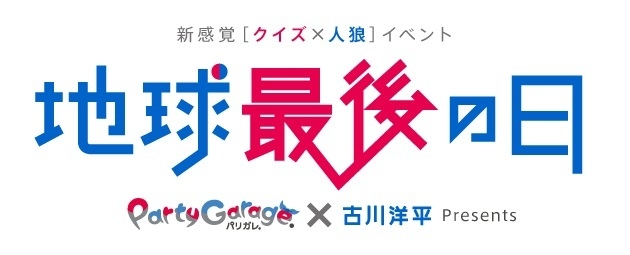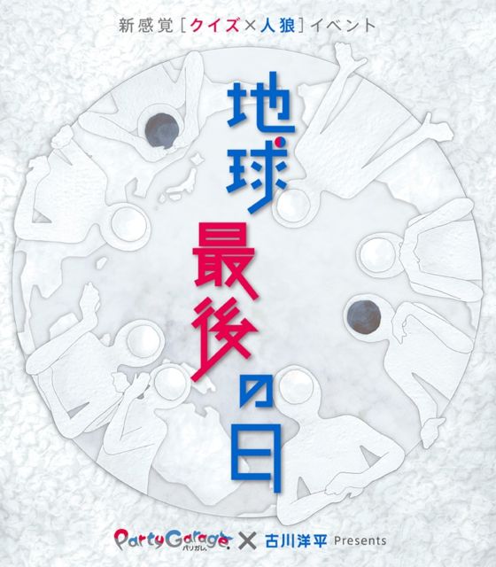 トピ立て失礼いたします。 はじめまして、イベント団体PartyGarage.と申します! 来る2015年12月26日(土)・27日(日)の2日間、 人狼とクイズをかけあわせた新感覚参加型ゲームイベント「地球最後の日」を開催致します。 普通の人狼とは一味もふたあじも違う新感覚ゲーム! 現在下記URLよりチケット予約受付中でございます。 どうぞみなさまお誘いあわせのうえご来場くださいませ!! PartyGarage.×古川洋平 presents 新感覚″クイズ×人狼″イベント 「地球最後の日」 【日時】 2015年12月26日(土) 12:00 × THANK YOU!!