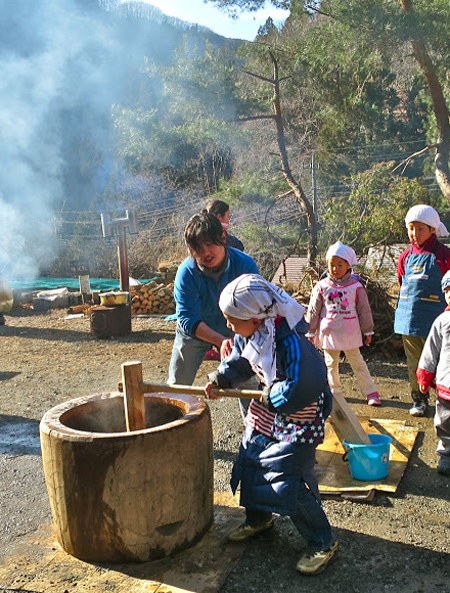 自分で作った鏡餅をお供えして新年を迎えましょう! 「野外塾流」は準備からかたづけまで全部体験。 たき火をおこして餅米を蒸すところから始めます。 「つく」だけではないので餅つきの流れがよくわかります。 たっぷり働き、たっぷり食べてください。 ※食べるお餅は大根おろし、あんころ、きなこ、海苔、漬け物など、いろーんな具材をご用意します。 作った鏡餅はお持ち帰り頂けます。 お餅つきやお餅のイメージが変わるかも。