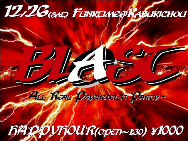 ■□■BLAST■□■ - After Xmas & 忘年会 SP - ■DAY:12月26日(SAT) □PLACE:新宿@FUNKTIME ■START:23:30〜11:00 □DOOR:2500/1D ■GUEST:¥2000/1D □HAPPYHOUR(〜1:30):\1000/ND ■□■RESIDENT DJ■□■ KUNJI(UP!NOIZE Records(PT)/BLAST) ■□■LIVESET■□ 01-N (Geomagnetic/ Goa Records) ■□■DJ's■□ i-460(Hatch) J (Acqua/Adiccion) GURUDO(BLAST/PSYGATE/Hatch) TAKAHIRO(BLAST/FUNKTIME) and More... ■□■BLAST■□■ [Facebook] http://www.facebook.com/pages/BL