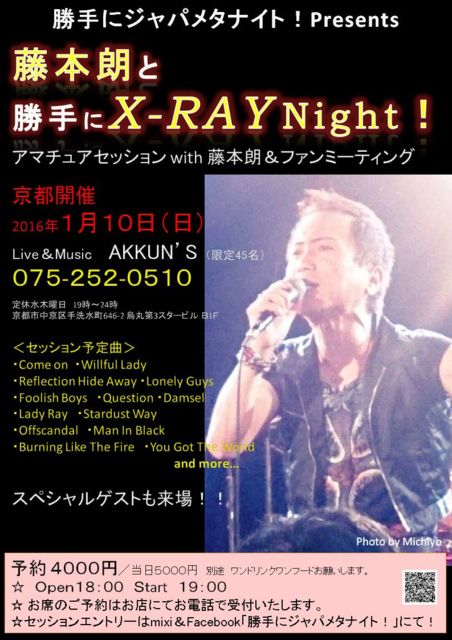 ¾¡¼ê¤Ë¥¸¥ã¥Ñ¥á¥¿¥Ê¥¤¥È¡ªpresents¡¡ ¡ØÆ£ËÜϯ¤È¾¡¼ê¤ËX-RAY Night¡ªin µþÅÔ¡Ù ³«ºÅ·èÄꡪ ¥¢¥Þ¥Á¥å¥¢»²²ÃX-RAY¥»¥Ã¥·¥ç¥ówith Æ£ËÜϯ ¡õ¥Ü¡¼¥«¥ë¥¯¥ê¥Ë¥Ã¥¯ ¥¹¥Ú¥·¥ã¥ë¥²¥¹¥È¤¢¤ê¡ª X-RAY¤Î¥Ü¡¼¥«¥ë¡¢Æ£ËÜϯ¤È¶¦±é¤Ç¤¤ëÌ´¤Î¤è¤¦¤Ê¥Á¥ã¥ó¥¹¡ª ¤â¤Á¤í¤ó³Ú´ï¤ò¥×¥ì¥¤¤·¤Ê¤¤¸«¤ë¤À¤±¤ÎÊý¤â£Ï£Ë¡ª ¡úµþÅÔ³«ºÅ¡¡2016ǯ£±·î£±£°Æü¡ÊÆü¡Ë ¡úLive¡õMusic AKKUN¡ÇS¡Ê¸ÂÄê45̾¡Ë ¡¡http://www.akkuns.com/ ¡¡µþÅÔ»ÔÃæµþ¶è¼êÀö¿åÄ®646-2 ±¨´ÝÂè3¥¹¥¿¡¼¥Ó¥ë £Â1£Æ ¡¡¡ÊÄêµÙ¿åÌÚÍËÆü¡¡19»þ¡Á24»þ¡Ë ¡ú£°£·£µ¡¾£²£µ£²¡¾£°£µ£±£°¡¡ ¡úͽÌó¡¡£´