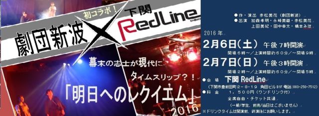 劇団新波×下関RedLine「明日へのレクイエム2016」予告編1 2016年2月6日(土)、7日(日) 下関RedLineにて公演する「明日へのレクイエム」の予告編第1弾 作・演出 赤松美花 出演 加藤孝明、赤松美花、永峰美織、上田美紀、田中幸太、橋本みほ