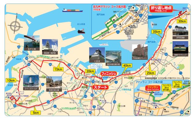 どこまでも続く応援! 前半の工業地帯からスペースワールド、 後半は海沿いの港町門司港レトロ地区の折り返し。 変化にとんだ北九州マラソン2016! 福岡から新幹線で20分、 よかよかキップ往復券3,000円がお薦めです。 http://kitakyushu-marathon.jp/ 参加される方はかき込みお願いします。 情報交換いたしましょう。