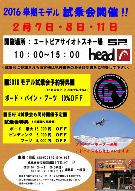 2·î7Æü¡¦8Æü¡¦11Æü¡¡¥æ¡¼¥È¥Ô¥¢¥µ¥¤¥ª¥È¥¹¥¡¼¾ì¤Ë¤Æ 15-16Íè´ü¥â¥Ç¥ë¤Î»î¾è²ñ¤ò³«ºÅ¤·¤Þ¤¹¡£ ¡¦¼«Ê¬¤Ë¹ç¤¦ÈĤ¬¤ï¤«¤é¤Ê¤¤¡£ ¡¦¥¹¥Î¡¼¥Ü¡¼¥É¤ÏÈĤÎŤµ¤¬Âç»ö¤À¤È»×¤Ã¤Æ¤¤¤ë¡£ ¡¦¤Ê¤«¤Ê¤«¾å㤷¤Ê¤¤¡£ ¡¦¥Ü¡¼¥É¤Ë¤è¤Ã¤Æ²¿¤¬°ã¤¦¤«¤ï¤«¤é¤Ê¤¤¡£ ¤Ê¤É¤Ê¤É¡¢¥¹¥Î¡¼¥Ü¡¼¥É¤ÎÆÃÀ¤Ë¤Ä¤¤¤Æ¤ï¤«¤é¤Ê¤¤Êý¤â¤¿¤¯¤µ¤ó¤¤¤ë¤È»×¤¤¤Þ¤¹¡£ ¥×¥í¥¹¥Î¡¼¥Ü¡¼¥À¡¼¤¬¤ä¤µ¤·¤¯¶µ¤¨¤Þ¤¹¤Î¤ÇÀ§ÈóÀ§È󳧤µ¤ó¤³¤Îµ¡²ñ¤Ë¤ª±Û¤·¤¯¤À¤µ¤¤¡£ »²²ÃÈñ¡§ÌµÎÁ¡Ê¥×¥í¥¹¥Î¡¼¥Ü¡¼¥À¡¼Íè¾ì¤Ç¥¢¥É¥Ð¥¤¥¹¤â¤é¤¨¤Á¤ã¤¤¤Þ¤¹¡Ë »²²Ã¥Ö¥é¥ó¥É¡§head/SP »þ´Ö¡§£±£°¡§£°£°