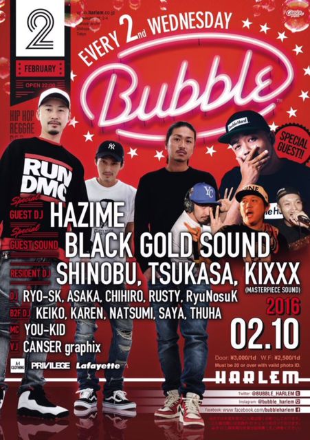 2/10(¿å)BUBBLE SPECIAL@½ÂëHARLEM ¡ù¡ú¡ù¡ú¡ù¡ú¡ù¡ú¡ù¡ú¡ù¡ú¡ù¡ú¡ù¡ú¡ù¡ú¡ù¡ú ¢£¥²¥¹¥È¤Ç¤ÎÆþ¾ìÊýË¡¤Ï¥¨¥ó¥È¥é¥ó¥¹¤Ë¤Æ¡¢ ¡Ú¥·¥Î¥Ö¤Î¥²¥¹¥È¤Ç¥Ð¥Ö¥ë¡Û ¤ÈÅÁ¤¨¤ÆÄº¤±¤ì¤Ð¥Ç¥£¥¹¥«¥¦¥ó¥ÈÎÁ¶â¤Ç¤´Æþ¾ì½ÐÍè¤ë¤Î¤Ç¤´ÍøÍѲ¼¤µ¤¤¡ª ¥Ç¥£¥¹¥«¥¦¥ó¥ÈÎÁ¶â¤Ï... \1500/1d ¤È¤Ê¤ê¤Þ¤¹¡£ ¡ù¡ú¡ù¡ú¡ù¡ú¡ù¡ú¡ù¡ú¡ù¡ú¡ù¡ú¡ù¡ú¡ù¡ú¡ù¡ú Open 22:00 [Guest DJ] HAZIME [Guest Sound] BLACK GOLD SOUND [ Resident ] SHINOBU / TSUKASA / KIXXX ( MASTERPIECE SOUND ) [ DJs ] RYO-SK / CHIHIRO / ASAKA / RUSTY / RyuNosK
