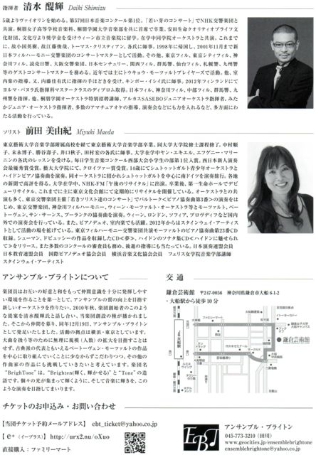 ½ñ¤¹þ¤ß¼ºÎ餤¤¿¤·¤Þ¤¹¡£ ¡Ö¥¢¥ó¥µ¥ó¥Ö¥ë¡¦¥Ö¥é¥¤¥È¥ó¡×¼¡²ó±éÁÕ²ñ¤Î¤´°ÆÆâ¤Ç¤¹¡£ »ä¤¿¤Á¤Ï²£ÉÍ¡¦Åìµþ¤òµòÅÀ¤Ë³èư¤·¤Æ¤¤¤ë¥¢¥Þ¥Á¥å¥¢¥ª¡¼¥±¥¹¥È¥é¤Ç¤¹¡£ ¼¡²ó¡¢Âè10²ó±éÁÕ²ñ¤Ë¸þ¤±¤Æ¡¢½àÈ÷¤ò¤·¤Æ¤ª¤ê¤Þ¤¹¡£ ¡á¡á¡á¡á¡á¡á¡á¡á¡á¡á¡á¡á¡á¡á¡á¡á¡á Ensemble BrighTone¡¡The 10th Concert ¥¢¥ó¥µ¥ó¥Ö¥ë¡¦¥Ö¥é¥¤¥È¥ó¡¡Âè10²ó±éÁÕ²ñ ¥Ù¡¼¥È¡¼¥ô¥§¥ó¡§¡¡·à²»³Ú¡Ö¥¨¥°¥â¥ó¥È¡× Op84 ½ø¶Ê ¥Ù¡¼¥È¡¼¥ô¥§¥ó¡§¡¡¥Ô¥¢¥Î¶¨ÁÕ¶ÊÂè5ÈÖ¡Ö¹ÄÄë¡× Op73 ¡¡ ¡¡¡¡¡¡¡¡¡¡¡¡¡¡¡¡ÆÈÁÕ¡¡Á°ÅÄÈþͳµª ¥Ù¡¼¥È¡¼¥ô¥§¥ó¡§¡¡¸ò¶Á¶ÊÂè3ÈÖ¡Ö±Ñͺ¡× Op55 Æü¡¡