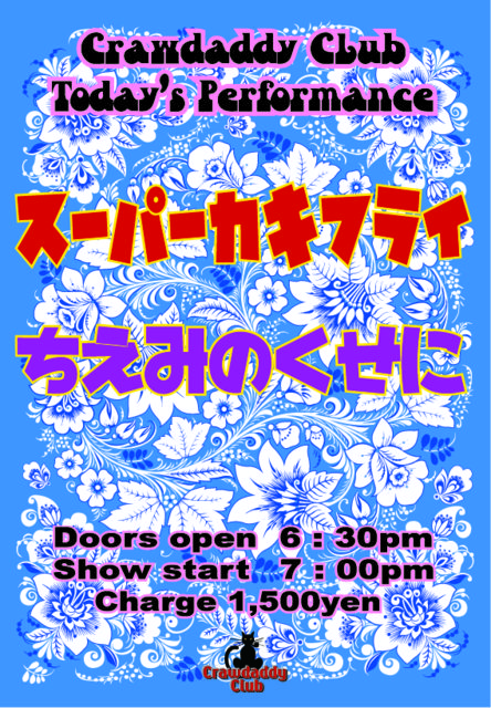 2/11 ËÜÆü¤Î¥é¥¤¥Ö¡¡ ¥¹¡¼¥Ñ¡¼¥«¥¥Õ¥é¥¤ (as Superfly )¡õ ¤Á¤¨¤ß¤Î¤¯¤»¤Ë(¤¤¤í¤¤¤í¥«¥Ð¡¼) ¥é¥¤¥Ö¡¡ OPEN 18:30 START 19:00 CHARGE 1500±ß