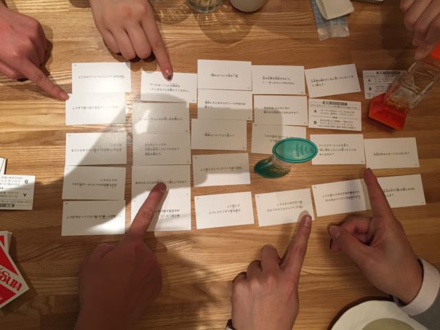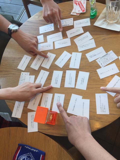仕事、プライベート、人間関係。 日々、様々なものに囲まれながら、 自分と向き合う時間は作れてますか? 自分って? 人生の意味って? 答えを出すことは難しいですが、 考え続けることで自分や周りの人を もっと大切に思えるのではないでしょうか。 日々、悩みをかかえているような方が それを紐解くキッカケとなるような 想いでカフェ会を開催しております。 今回はUNGAME! UNGAME(アンゲーム)は世界で最も人気のある自己表現ゲームと言われるカードゲームです♪ プレイ方法は至って簡単! 質問カードを引いてその内