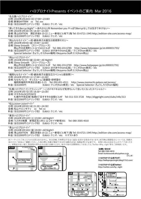 ¡È̾¸Å²°¥Ï¥í¥×¥í¥Ê¥¤¥È¡É ¡Á¿ÈÂΤÀ¤±¤¬Âç¿Í¤Ë¤Ê¤Ã¤¿¤ó¤¸¤ã¤Ê¤¤¹á²»¤Î¾Ð´é¤ÏÀ¤³¦¤òµß¤¦È¯É½²ñ2016¡Á Æü»þ¡§2016ǯ2·î28Æü¡ÊÆü¡Ë17:00¡Á23:00 ²ñ¾ì¡§¿·±ÉDAYTRIM¡¡052-241-5019 ½»½ê¡§Ì¾¸Å²°»ÔÃæ¶èÅìºù2-22-14 ¥¥ó¥°¥Ó¥ë3F http://daytrive.com/ ÎÁ¶â¡§ÅöÆü2500±ß¡Ê¥¢¥ë¥³¡¼¥ë´Þ¤à¥É¥ê¥ó¥¯°û¤ßÊüÂꡪ¡Ë DJ¡õVJ¡§¥¯¥Ë¥ª¡¿etc Selector Time¡§¤¤¤ï¤ä¤¹ Special Support¡§ÂçÃÏ¡¿¼ÇÅÄ¡¿¤É¤¥¡¼ ¡ù½Ð±é¼Ô¤Ïͽ¹ð¤Ê¤¯Äɲá¦Êѹ¹¤¹¤ë¾ì¹ç¤¬¤¢¤ê¤Þ¤¹¡£ ¡Ú̾¸Å²°¥Ï¥í¥×¥í¥Ê¥¤¥È¤Î¥à¡¼¥É¤ò¾Ò²ð¤¹¤ë¥³¡¼¥Ê¡¼¡Û ¤è¤¦¤³¤½¤¤¤ê¤ã¡Á¤»(^O^) ¥Ï