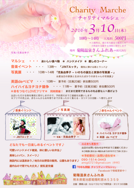 ÅìÆüËÜÂç¿ÌºÒ¡¡¥Á¥ã¥ê¥Æ¥£¡¼¥Þ¥ë¥·¥§³«ºÅ ¤É¤Ê¤¿¤Ç¤â³Ú¤·¤á¤ë¥¤¥Ù¥ó¥È¤Ç¤¹ ¡ú£³·î£±£°Æü¡¡£±£°»þ¡Á£±£´»þ ¡ùµÆÍÛÄ®¤µ¤ó¤Õ¤ì¤¢ ¡úÆþ±àÎÁ£µ£°£°±ß¡¡¡ÊµÁ±ç¶â¤Ë¤µ¤»¤ÆÄº¤¤Þ¤¹¡Ë ¢ö£±£°»þ¡Á¡¡±Ñ¸ì¤Ç¥Ù¥Ó¥Þ¡¡»²²ÃÈñ£µ£°£°±ß¡¡Í×ͽÌó ¢ö£±£±»þ¡Á¥Ï¥¤¥Ï¥¤¡¡¥è¥Á¥è¥Á¶¥Áè¡¡»²²ÃÈñ£µ£°£°±ß¡¡Í×ͽÌó ¢ö£±£³»þ¡Á²»³Ú¥¤¥Ù¥ó¥È ¢ö£±£°»þ¡Á£±£´»þ¡¡»ùÅçͳµ¨»Ò¤µ¤ó¡¡¼Ì¿¿Å¸ ¢ö£±£°»þ¡Á£±£´»þ¡¡¡¡¥Õ¥ê¥Þ ¤ª¤¤¤·¤¤¿©¤Ùʪ¡¡¥Ï¥ó¥É¥á¥¤¥É ¥Þ¥Ã¥µ¡¼¥¸¡¡¥Þ¥äÎñ¡¡¥Ü¥¤¥¸¥ã¡¼¥¿¥í¥Ã¥È Ãϸµ¤Î¤ªÌîºÚ¡¡¤ªÊÛÅö ²¹Àô¡¡¸ø±à¡¡