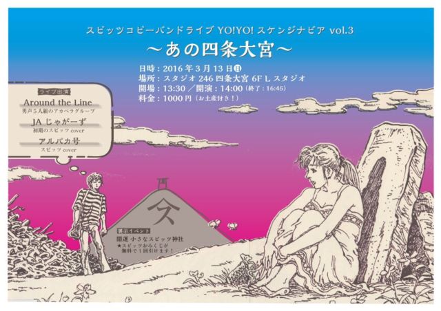 Â繥ɾ¤ÎÂçºå¤Î¥¹¥Ô¥Ã¥Ä¥Õ¥¡¥ó¤¬¥¹¥Ô¥Ã¥Ä¥Õ¥¡¥ó¤Î¤¿¤á¤Ë³«ºÅ¤¹¤ë¥é¥¤¥Ö¥¤¥Ù¥ó¥È YO!YO!¥¹¥±¥ó¥¸¥Ê¥Ó¥¢ vol.3 ¤¬³«ºÅ·èÄꡪ¡ª º£²ó¤ÏÌó3»þ´Ö¤Î¡Ö¥é¥¤¥Ö¥¤¥Ù¥ó¥È¡Ê°ì¼¡²ñ¡Ë¡×¤È¡¢ »²²Ã¼Ô¤Ç¸òή¤ò¿Þ¤ë¡Ö°û¤ß²ñ¡ÊÆó¼¡²ñ¡Ë¡×¤ò¤ª¤³¤Ê¤¤¤Þ¤¹¡£ ¥¹¥Ô¥Ã¥Ä¤ò¹¥¤¤Ê¿ÍƱ»Î¤Ç ²Î¤Ã¤¿¤ê¤·¤ã¤Ù¤Ã¤¿¤ê ¤¢¤ë¤¤¤Ï¿©¤Ù¤¿¤ê°û¤ó¤À¤ê ³Ú¤·¤¤¤Ò¤È¤È¤¤ò²á¤´¤·¤Þ¤·¤ç¤¦¡ª ¢¡¥é¥¤¥Ö½Ð±é ¡¦Around the Line ÃËÀ¼£µ¿ÍÁȤΥ¢¥«¥Ú¥é¥°¥ë¡¼¥×¤Ç¤¹¡£ ±éÁնʤΥ¸¥ã¥ó¥ë¤ÏÍÍ¡¹¤Ç¤¹¤¬¡¢¥¹¥Ô¥Ã¥Ä¤Î³Ú¶Ê¤Î¥¢¥«¥Ú¥é¥¢¥ì¥ó¥¸¤Ë¤âÍ×ÃíÌÜ¡ª ¡¦JA ¤¸¤ã¤¬¡¼¤º¡Êfrom