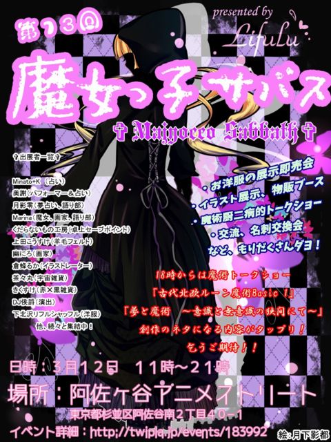 ¸½À¤¤Ë½»¤Þ¤¦Ëâ½÷¡¢Ëâ½Ñ»Õ¤ò¼«³Ð¤¹¤ë³§ÍÍ¡¢ÂçÊѤª¤Þ¤¿¤»Ãפ·¤Þ¤·¤¿¡£ ¢÷Majyocco Sabbath¢÷vol.13¡¡¤Î³«ºÅ¤¬·èÄêÃפ·¤Þ¤·¤¿¡ª¡ª¡ª Æü»þ¡§ ¡¡¡¡¡¡3·î12Æü¡ÊÅÚ¡Ë¡¡£±£±¡§£°£°~£²£±¡§£°£° Æþ¾ì¡§ ¡¡¡¡¡¡ÌµÎÁ¡Ê½ÐÆþ¤ê¼«Í³¤Ç¤¹¡Ë ¾ì½ê¡§¡¡¡¡¡¡°¤º´¥ö륢¥Ë¥á¥¹¥È¥ê¡¼¥È ¢©166-0004 ÅìµþÅÔ¿ùʶ谤º´Ã«Æî£²ÃúÌÜ£´£°¡Ý£± ¥¢¥¯¥»¥¹¡§ °¤º´¥öë±Ø²þ»¥¤ò½Ð¤Æ¡¢¹â±ß»ûÊýÌ̤ØÅ´Æ»±è¤¤¤ËÊ⤤¤Æ£³Ê¬¤Û¤É¡£ Ëâ½÷¤Ã»Ò¥µ¥Ð¥¹Â裱£³²óÌÜ¡¢½é¤ÎÅÚÍËÆü³«ºÅ¡ª¡ª ¤½¤·¤ÆºÇĹ£±£°»þ´Ö¡ª¡ª º£²ó¤Ï»þ´Ö¤âŤ¯¡¢ÌÀ¤ë¤¤»þ´ÖÂÓ¤Ë