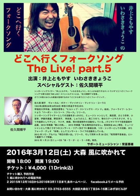 ¤Ï¤¸¤á¤Þ¤·¤Æ¤Î½ñ¤¹þ¤ß¤Ç¤¹¡£¤³¤¦¤»¤Ä¤µ¤ó¤Î¥µ¥Ý¡¼¥È¤Ç¤ªÆëÀ÷¤ß¤Îº´µ×´Ö½çÊ¿¤µ¤ó¤¬¥²¥¹¥È¤Ç½Ð±é¤¹¤ë¥é¥¤¥Ö¥¤¥Ù¥ó¥È¤ò½ñ¤«¤»¤Æ¤¤¤¿¤À¤¤Þ¤¹¡£ Â翹¡ÖÉ÷¤Ë¿á¤«¤ì¤Æ¡×¤Ë¤Æ ÅìµþÅÔÂçÅĶèÂ翹ËÌ1ÃúÌÜ34-16ÂèÆó¤ß¤º¤Û¥Ó¥ë2F 03-3763-6555 18:00³«¾ì/19:00³«±é ¥Á¥ã¡¼¥¸\4,000 ¢¨1DÉÕ ½Ð±é¡§°æ¾å¤È¤â¤ä¤¹¡¿¤¤¤ï¤µ¤¤¤ç¤¦¤³¡¿¾ïÉÙ´îͺ¡ÊÇ¡Ë ¥¹¥Ú¥·¥ã¥ë¥²¥¹¥È¡§º´µ×´Ö½çÊ¿ YoutubeÇÛ¿®¤Î¥Í¥Ã¥È¥é¥¸¥ª¡ÊTV¡ËÈÖÁȡ֤ɤ³¤Ø¹Ô¤¯¥Õ¥©¡¼¥¯¥½¥ó¥° ¡×¤Î¸ø³«Ï¿²»¡Ö¤É¤³¥Õ¥©¡¼The Live¡ª¡×¤Î¥¤¥Ù¥ó¥È¤ÇVol.5 ¤È¤Ê¤ê¤Þ¤¹¡£ https://www.facebook.co