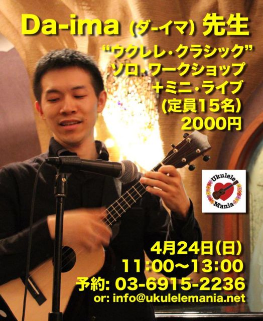 Da-ima(¥À¡¼¥¤¥Þ)ÀèÀ¸ "¥¦¥¯¥ì¥ì¡¦¥¯¥é¥·¥Ã¥¯" ¥½¥í¡¦¥ï¡¼¥¯¥·¥ç¥Ã¥×¡Ü¥ß¥Ë¥é¥¤¥Ö Æü¡¡»þ¡§2016ǯ4·î24Æü(Æü) 11:00¡Á13:00 »²²ÃÈñ¡§2,000±ß¡ÊÄê°÷15̾¡Ë ¾ì¡¡½ê¡§¥¦¥¯¥ì¥ì¥Þ¥Ë¥¢Å¹Æâ¡ÊÃÓÂÞ¡Ë Í½¡¡Ìó¡§03-6915-2236¤Þ¤¿¤Ïinfo@ukulelemania.net ²ÝÂê¶Ê¡§¡Ø¥Î¥¯¥¿¡¼¥ó¡Ù¡Ø¤¯¤ë¤ß³ä¤ê¿Í·Á¡Ù Æâ¡¡ÍÆ¡§¥¦¥¯¥ì¥ì¤Ç¥¯¥é¥·¥Ã¥¯¶Ê¡£TABÉ褬ÆÉ¤á¤ëÊýÂоݡ£ ¡¡¡¡¡¡¡¡High-G, Low-G¤É¤Á¤é¤Ç¤âOK! ¡¡¡¡¡¡¡¡¡Ê¤Á¤Ê¤ß¤Ë¡¢ÀèÀ¸¤ÏLow-G¤ò¤´»ÈÍѤǤ¹¡Ë