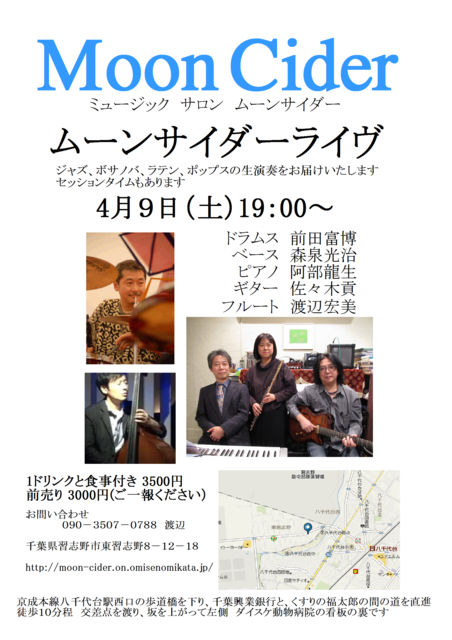 先月は突然中止にしまして申し訳ありませんでした。 今月はなにがなんでもやります! というわけで、4月の「阿漕(ACOGI)なみゆき」のご案内です。 おかげさまで、「阿漕(AKOGI)なみゆき」も今月で5年目を迎えます。 これも参加してくださる皆さんのおかげです。 これからもご愛顧のほどよろしくお願いいたします。 希望者がいた場合のみに「ギター初心者教室」を1時間行ないたいと思います。 なにかのきっかけで「ギターを弾いてみたい!」という方がいらっしゃいましたら、是非ご参加ください。 そしていつものとおり 思い