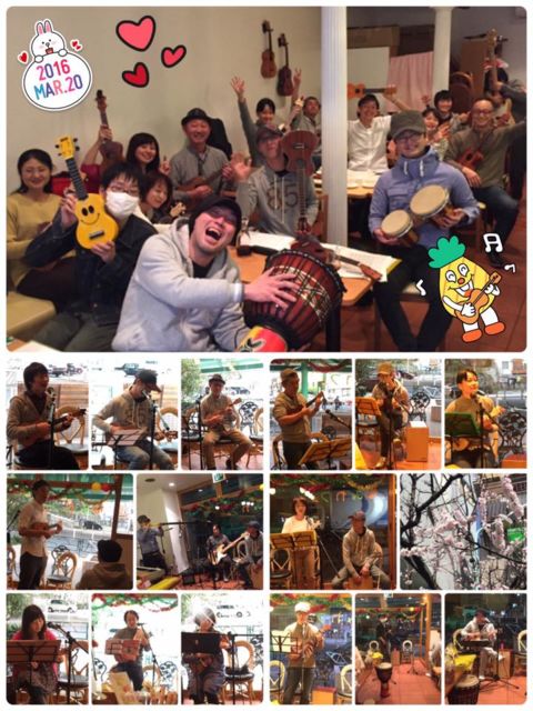4月のなみカフェ 定例オープンマイクで〜すヾ(@~▽~@)ノ 何かと忙しいと思いますがフルってご参加くださ〜い!! ★お知らせ★ 今回も『みんなで歌おう』コーナーを バンド風に色んな楽器で演奏して それに合わせて 皆でウクレレ&歌で一緒に演奏って感じで出来ればと考えてます!! オープンマイク参加される方で 皆で歌おうコーナーバンド 興味ある方は 参加ポチのあと 『バンドベース希望』『バンドピアノ希望』など書き込みお願いしますo(〃^▽^〃)o ギター、ベース(ウクレレベース)、パーカッション、ピアノ、ハーモニカ、三線 何