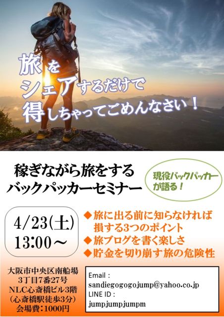 ¡Ú²Ô¤®¤Ê¤¬¤éι¤ò¤¹¤ë¥Ð¥Ã¥¯¥Ñ¥Ã¥«¡¼¥»¥ß¥Ê¡¼¡Û ι¤ò¥·¥§¥¢¤¹¤ë¤À¤±¤Ç ¤½¤ì¤¬»Å»ö¤Ë¤Ê¤ë¡¦¡¦¡¦¡© Ëͤϵîǯ¡¢ÃæÆîÊÆ¤Ø °ì¿Íι¤Ë¹Ô¤Ã¤Æ¤¤Þ¤·¤¿¡£ ¤½¤³¤Ç¤Ï ¤ª¤¤¤·¤¤¤â¤Î¤ò¿©¤Ù¤¿¤ê ÁÇÀ²¤é¤·¤¤·Ê¿§¤Ë´¶Æ°¤·¤¿¤ê ¤«¤±¤¬¤¨¤Î¤Ê¤¤¿Í¤È¤Î½Ð²ñ¤¤¤¬¤¢¤Ã¤¿¤ê¡£ ¤¹¤Ù¤Æ¤¬º£¤Þ¤Ç¤Ë ¸«¤¿¤³¤È¤Î¤Ê¤¤À¤³¦¤Ç ¤È¤Æ¤â½¼¼Â¤·¤¿ ³Ú¤·¤¤Î¹¤òÁ÷¤Ã¤Æ¤¤¤Þ¤·¤¿¡£ ¤·¤«¤· ËèÆüƬ¤«¤éÎ¥¤ì¤Ê¤«¤Ã¤¿ °ìÈ֤ΥХ寥ѥå«¡¼¤ÎǺ¤ß ¤½¤ì¤Ï¡¦¡¦¡¦ "»ñ¶â" ¤Ç¤¹¡£ À¤³¦Ãæ¤Î Ëܾì¤Î¥Ó¡¼¥ë¤ò°û¤ó¤Ç¤ß¤¿¤¤¡¦¡¦¡¦