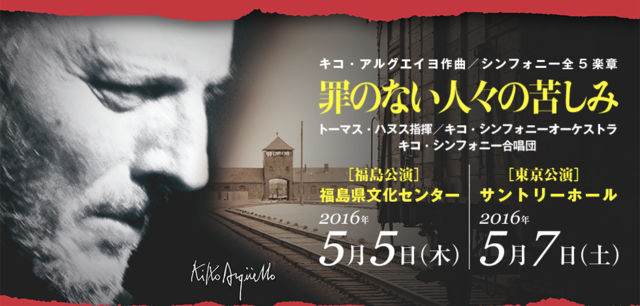 はじめまして。 5月5日に福岡文化センターで「キコ・アルグエイヨ・罪のない人々の苦しみ」というオーケストラが開演されます。 東北の復興を祈ってのコンサートのための来日となります。 シンフォニー「罪のない人々の苦しみ」全5楽章 トーマス・ハヌス指揮/キコ・シンフォニーオーケストラ/キコ・シンフォニー合唱団 http://www.the-suffering-of-the-innocents.com/ チケットは3000円ですが、別枠として「被災者無料ご招待」席もご用意しています。 http://www.the-suffering-of-the-innocents.com/#!blank/czpl 音楽で東