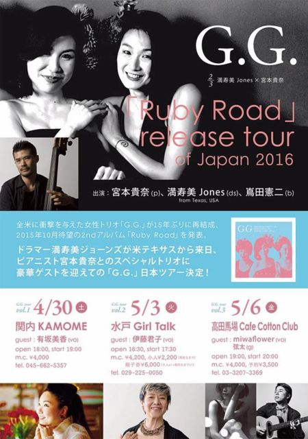 5/3(²Ð) Ëþ¼÷Èþ Jones x µÜËÜ µ®Æà Sp.¥²¥¹¥È °ËÆ£·¯»Ò µÜËÜ µ®Æà/p Ëþ¼÷Èþ Jones/ds (from Texas) ÖºÅÄ ·ûÆó/b ¥¹¥Ú¥·¥ã¥ë¥²¥¹¥È:°ËÆ£ ·¯»Ò/vo SHOWTIME:17:30 OPEN:16:30 CHARGE:\4200 ¾®¿Í¡ï2200(¹â¹»À¸¤Þ¤Ç) ¿Æ»Ò·ô6000±ß¡ÊÂç¿Íx£±+¾®¿Í¹â¹»À¸¤Þ¤Çx£±¡Ë Á´ÊƤò¾×·â¤òÍ¿¤¨¤¿½÷À¥È¥ê¥ª¡ÖG.G.¡×¤¬15ǯ¤Ö¤ê¤ËºÆ·ëÀ®¡¢2015ǯÂÔ˾¤Î2nd¥¢¥ë¥Ð¥à¡ÖRuby Road¡×¤òȯɽ¡£¥É¥é¥Þ¡¼Ëþ¼÷Èþ¥¸¥ç¡¼¥ó¥º¤¬Êƥƥ¥µ¥¹¤«¤éÍèÆü¡¢Â¿ÊýÌ̤dzèÌöÃæ¤Î¥Ô¥¢¥Ë¥¹¥ÈµÜËܵ®Æà¤È¤Îsp¥È¥ê¥ª¤Ë¹ë²Ú¥²¥¹¥È¤ò·Þ¤¨¤Æ¤ÎG.G.ÆüËܥĥ¢¡¼·èÄꡪ¡ÖÆüËܤλêÊõ¡×Âç¸æ½ê¥¸¥ã¥º¥Ü