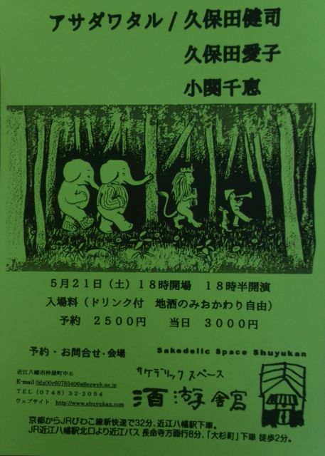 ¤«¤¨¤ë¤µ¤ó¤È¿Æ¤·¤¤¥¢¥µ¥À¥ï¥¿¥ë¤µ¤ó¤Î¥é¥¤¥Ö¹ðÃΤǤ¹¡£ Æþ¾ìÎÁ¡Ê¥É¥ê¥ó¥¯ÉÕ Ãϼò¤Î¤ß¤ªÂå¤ê¼«Í³¡ËͽÌó£²£µ£°£°±ß ÅöÆü£³£°£°£°±ß ¢ö¥¢¥µ¥À¥ï¥¿¥ë¡¿1979ǯÀ¸¤Þ¤ì¡£ºî²È¡¢¥ß¥å¡¼¥¸¥·¥ã¥ó¡£¸ÀÍդȲ»³Ú¤ò¶î»È¤·¤Æ¡¢²¿ µ¤¤Ê¤¤Êë¤é¤·¤ËËä¤â¤ì¤ë¡Öɽ¸½¡×¤Ë¸÷¤ò¤¢¤Æ¤ë¡¢¼«¾Î¡ÉÆü¾ïÊÔ½¸²È¡É¡£ 2002ǯ¡¢¥Ð¥ó¥É¡Ö±Û¸å²°¡×¤Î¥É¥é¥Þ¡¼¤È¤·¤ÆNOISE MaCARTNEY RECORDS¤è¤êCD¤ò¥ê¥ê¡¼¥¹¡£ 2003ǯ°Ê¹ß¡¢¥µ¥¦¥ó¥É¥æ¥Ë¥Ã¥È¡ÖSjQ¡×(HEADZ/cubic music)¤Î¥É¥é¥àôÅö¤ÈʹԤ·¤Æ¡¢ ¥½¥í¥×¥í¥¸¥§¥¯¥È¡ÖÂçÏÂÀî¥ì¥³¡¼¥É¡×»Ïư¡£ 2000ǯÂå¸åȾ¤Ï¡¢Ãϰ襳¥ß¥å¥Ë¥Æ¥£¤Ë´Ø¤ï