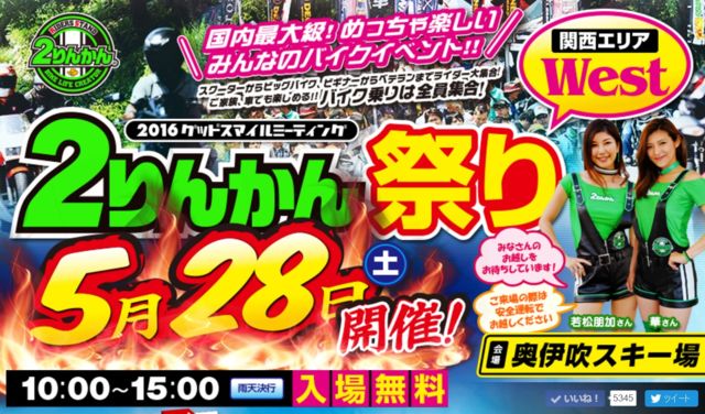 ¥Ð¥¤¥¯¥ß¡¼¥Æ¥£¥ó¥°¥¤¥Ù¥ó¥È¡Ø£²¤ê¤ó¤«¤óº×¤ê 2016West¥°¥Ã¥É¥¹¥Þ¥¤¥ë¥ß¡¼¥Æ¥£¥ó¥°¡Ù¤ò2016ǯ5·î28Æü(ÅÚ)¤Ë³«ºÅ¤µ¤ì¤Þ¤¹¡£ ³§¤ÇÍ·¤Ó¤ËÄɤ¤Íè¤Þ¤»¤ó¤«¡© http://www.2rinkan-festival.com/ Æü»þ¡§5·î28Æü¡ÊÅÚ¡Ë ¾ì½ê¡§°Ë¿á»³¥¹¥¡¼¾ì Âè°ì½¸¹ç¾ì½ê¡§·ËÀîPA¾å¤êÀþ¡¡¡Êhttps://goo.gl/maps/uF9CREfmGer¡Ë ¡¡¡¡¡¡¡¡¡¡¡¡¡¡¡¡¡¡½Ðȯ»þ´Ö¡§£·¡§£´£° ÂèÆó½¸¹ç¾ì½ê¡§¼¢²ì¸©¤ÎÆ»¤Î±Ø°Ë¿á¤ÎΤ¡¡¡Êhttps://goo.gl/maps/7o6z1BqfpXG2¡Ë ¡¡¡¡¡¡¡¡¡¡¡¡¡¡¡¡¡¡½Ðȯ»þ´Ö¡§£¹¡§£³£° Ãë¿©¡§¥³¡¼¥Ò¡¼¡õ¥¹¥Æ¡¼¥¾¾¡Ê¤«¤â¤·¤ì¤Ê¤¤¡¦¡¦¡¦°Æ¡Ë http://tabelog.c