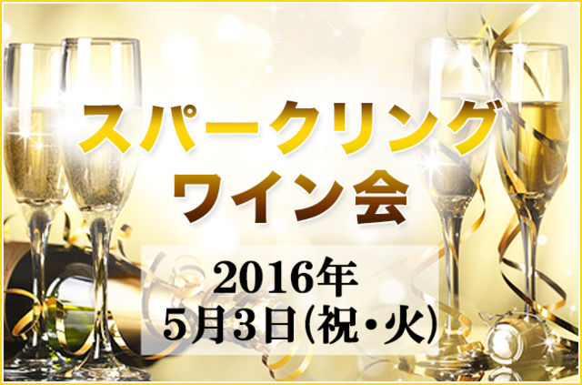 5月3日(火・祝)横浜にて「スパークリングワイン会」を開催します。 みんなでワイワイと楽しむ半立食ビュッフェスタイルのワイン会です。 【日時】2016年5月3日(火・祝)16:00〜18:00 【ワイン】世界各国のスパークリングワイン飲み放題 【定員】40名程度 【会費】5,000円 【参加者】30代40代中心 【お申込み】 http://www.wine-party.jp/ 主催:ソレイユのワインパーティー http://www.wine-party.jp/