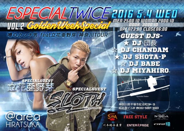 https://www.facebook.com/events/632551230231989/ 5·î4Æü(GW)Ê¿ÄÍAREA ESPECIAL x TWICE vol.2 GOLDEN WEEK SPECIAL ±½¤ÎBITCH SLOTH ¡õ Ω²Ö°¡Ìî²ê ½Ð±é¡ª http://ameblo.jp/trancefamily/entry-12156030357.html Á°²óÂçÀ¹¤ê¾å¤¬¤ê¤·¤¿E&T PARTY!! º£²ó¤ÏÏÃÂêʨƤὤÎBITCH SLOTH¡¡¤¬½Ð±é·èÄꡪ ¥¿¥ì¥ó¥È DJ ¥â¥Ç¥ë ¥À¥ó¥µ¡¼¤ÇÂç¿Íµ¤ Ω²Ö°¡Ìî²ê¤È ±½¤Î¥«¥ó¥ÁÃ˽é¤Î¿ÀÆàÀî¥Ä¥¢¡¼·èÄê http://souljapan.jp/articles/XAJpt CLUB AREA ¿ÀÆàÀʿÄͻԹÈëĮ13-13 ¹ÈëºÂ¥Ó¥ëF1 GENLE EDM PSYCHE ALL