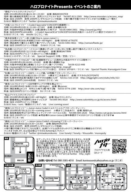 “松山アイドルスタジオジャパン” 日時:2016年5月6日(金)22:00〜All Night! 会場:松山サロンキティ 住所:愛媛県松山市河原町138キティビル1F Tel:089-945-0020 http://www.salonkitty.co.jp/sk/access.html 料金:当日 2000円(1ドリンク別途) DJ&VJ:kou/soni/魅惑のクニオ♂/etc Live:ならさきゅり/coming soon! 【アイドルスタジオジャパンとは……?】 2012年に始まったアイドル全般の楽曲の踊れる!騒げる!イベント、 「アイドルスタジオジャパン」が香川県・高松で出張開催! 皆様をアイドルアミューズメントパ