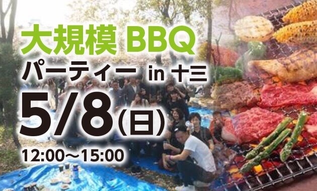5月はバーベキューの季節です(^^) 《4月の大阪城公園 お花見BBQ》は140名様で盛り上がりました! また違った雰囲気を楽しめる十三河川敷です!! 橋の下の予定なので、雨や日焼けも心配なし(´▽`) 美味しいお肉、野菜、焼きそば、その他食材あり、アルコール&ソフトドリンク等、皆様に満足頂ける質と量をご用意し楽しいお酒を飲みながらわいわい楽しみましょう かなり人気のイベントになりますので、是非お早めの参加表明をオススメ致します!! 会場:十三大橋周辺《バーベキュー可能場所》 ※集合場所、会場については追ってご