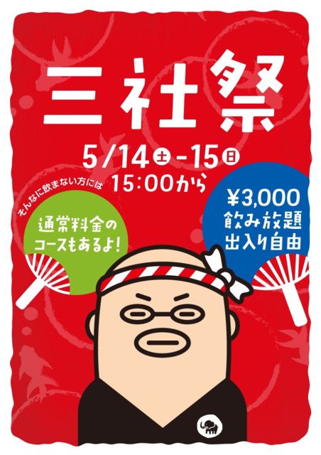 浅草が、一年で一番熱い日がやってくるぜ〜 三社祭だぜ〜 みんな浅草へ集合だぜ〜 ☆*:.。. o(≧▽≦)o . o(≧▽≦)o .。.:*☆ セィヤセィヤ〜♪セィヤセィヤ〜♪ DUMBOは14日、15日の2日間。 15時からの営業だぜ〜 ヨッ粋だね〜〜〜 3000円飲み放題コースと通常料金コースと2つ用意して待ってるぜ〜 ☆*:.。. o(≧▽≦)o . o(≧▽≦)o .。.:*☆ セィヤセィヤ〜♪セィヤセィヤ〜♪