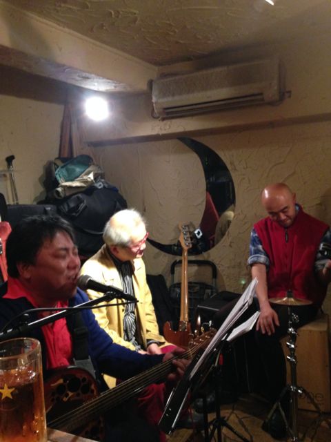 ぶっちゃあさん率いる親父フォークバンド『ちゃぶたま』のメンバーでもあるシンガーソングライターな溝口タカトシさんと、やはり同バンドのベーシストであり音楽プロデューサーでもある元道俊哉さん、そして『スキンヘッズ』などのドラマーである中村暢晃さんのコラボライブです! 回を重ねるごとに、大いに盛り上がってきています♪ 今回はどんなライブになるのか、今から楽しみです(^_−)−☆ タカトシさんは、オイラの店ではすでにお馴染みの曲『心の迷路に迷ったら』をはじめ、東北大震災をテーマとした『光と陰の行方』など、素晴らしい曲