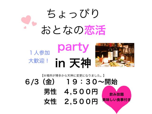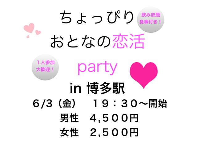 1¿Í¤Ç»²²Ã¤¬Â¿¤¤¤Èͽ¬¤·¤Æ¤ª¤ê¤Þ¤¹¡ª¡ª ¤â¤¦°ìÅÙ¹Ô¤¤¿¤¤¤È»×¤ï¤ì¤ë¤è¤¦¤Ê ¥¤¥Ù¥ó¥È¤Ë¤·¤¿¤¤¤È¹Í¤¨¤Æ¤¤¤Þ¤¹¡£ ¡¡ µ¹¤·¤¯¸æ´ê¤¤Ãפ·¤Þ¤¹¡ª ¡¡ ¡Ú³«ºÅÆü»þ¡Û2016ǯ6·î3Æü¡Ê¶â¡Ë19:30 ¡Á ¡Ú³«ºÅ¤¹¤ë³¹¡ÛÊ¡²¬¸©Ê¡²¬»ÔÇî¿¶è ¡¡¡¡¡¡¡¡¡¡¡¡¡¡ÇØÃÞ»ç¸ýÅÌÊ⣲ʬ ¡ÚÄê°÷¡Û¡¡£²£°Ì¾¡¡Ã˽÷³Æ£±£°Ì¾ ¡Ê¢¨Äê°÷¤Ë¤Ê¤ê¼¡ÂèÄù¤áÀÚ¤ê¤È ¤µ¤»¤Æ¤¤¤¿¤À¤¤Þ¤¹¡£¡Ë ¡ÚÎÁ¶â¡Û ÃËÀ1¿Í \4,500 ½÷À1¿Í \2,500 ¡Ú»ÙʧÊýË¡¡Û ÅöÆü¸½¶â ¡Ú»²²Ã»ñ³Ê¡Û ¼Ò²ñ¿Í¸ÂÄê¡¡ »Å»öµ¢¤ê¤Î¥¹¡¼¥Ä¤Ç»²²Ã¤â²Äǽ ¡ÚÃËÀ¡Û25ºÍ¡Á35ºÍ ¡ÊÎø°¦¡¦·ëº§¤ËÁ°¸þ¤