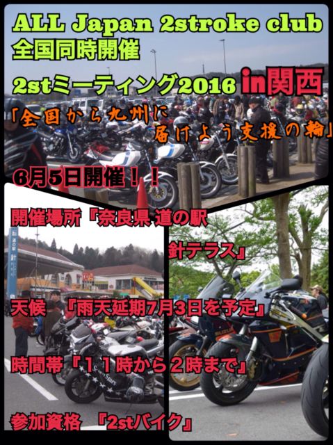 All Japan 2stroke club Á´¹ñƱ»þ³«ºÅ2st¥ß¡¼¥Æ¥£¥ó¥°2016 ¡ÖÁ´¹ñ¤«¤é¶å½£¤ËÆÏ¤±¤è¤¦»Ù±ç¤ÎÎØ¡× ´ØÀ¾¤Ï¿Ë¥Æ¥é¥¹¤Ë¤Æ³«ºÅ¤·¤Þ¤¹¢ö( ¡¢¦¡®) ¾ÜºÙ¢ ³«ºÅ¾ì½ê ¡ØÆàÎɸ© Æ»¤Î±Ø ¿Ë¥Æ¥é¥¹¡Ù Å·¸õ ¡Ø±«Å·±ä´ü7·î3Æü¤òͽÄê¡Ù »þ´ÖÂÓ ¡Ø£±£±»þ¤«¤é£²»þ¤Þ¤Ç¡Ù »²²Ã»ñ³Ê ¡Ø2st¥Ð¥¤¥¯¤Ê¤é¼Ö¼ïÌä¤ï¤º¡Ù ¢¨Ë½Áö²¡¢ÄÁÁöÃÄ¡¢»°ÃÊ¥·¡¼¥ÈÅù¤Ï»²²Ã¤´±óθ¤¯¤À¤µ¤¤¡ª¡ª ´ðËܼ«Í³¤Ë½¸¤Þ¤ê»¨Ã̤ä¾ðÊó¸ò´¹¡¢¼Ì¿¿»£±Æ²ñ¡¢·§Ë̺ܿҤÎÊç¶â³èư¤â¹Ô¤¤¤Þ¤¹¤Î¤ÇÀ§È󳧤µ¤ó¤Î¤´¶¨ÎϤè¤í¤·¤¯¤ª´ê¤¤¤¤¤¿¤·¤Þ¤¹¡£All Japan 2stroke club¥¹