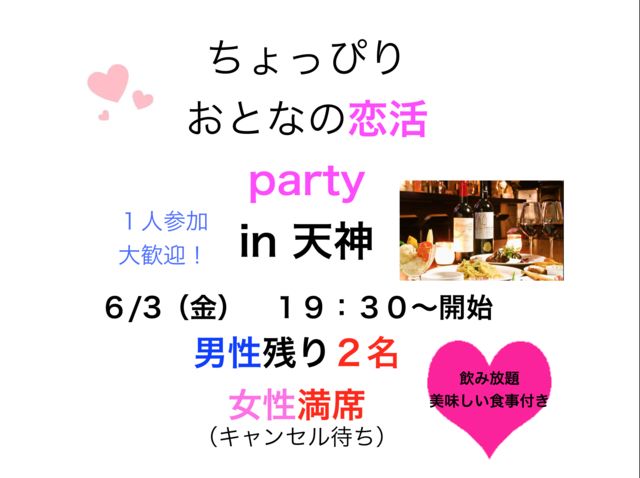 ¡ÚÅ·¿À¤ÇÎø³è¡Û Îø³è¥Ñ¡¼¥Æ¥£¡¼¤òËÜÆü³«ºÅ¤·¤Þ¤¹¡ª¡ª ½÷ÀËþÀÊ¡ª ÃËÀ¥é¥¹¥È£³Ì¾¡ª ÃËÀ£³£µ£°£°±ß¡ª¡ª¡ÊÇòÀоҲð¤È¤ªÅÁ¤¨¤¯¤À¤µ¤¤¡£¡Ë Å·¿À¤ÇÎø³è¥¤¥Ù¥ó¥È³«ºÅ¤·¤Þ¤¹¡ª ¤â¤¦°ìÅÙ¹Ô¤¤¿¤¤¤È»×¤ï¤ì¤ë¤è¤¦¤Ê ¥¤¥Ù¥ó¥È¤Ë¤·¤¿¤¤¤È¹Í¤¨¤Æ¤¤¤Þ¤¹¡£ µ¹¤·¤¯¸æ´ê¤¤Ãפ·¤Þ¤¹¡ª ¡¡ ¡Ú³«ºÅÆü»þ¡Û2016ǯ6·î3Æü¡Ê¶â¡Ë19:30 ¡Á ¡Ú³«ºÅ¤¹¤ë³¹¡ÛÊ¡²¬¸©Ê¡²¬»ÔÃæ±û¶è Å·¿Àº£Àô ¡¡¡¡¡¡¡¡¡¡¡¡¡¡À¾Å´Å·¿À¤«¤éÅÌÊ⣲ʬ ¥«¥Õ¥§¥Æ¥ó¥ÝÅ·¿Àº£Àô ¡¡¡¡¡¡ ¡¡¡¡¡¡¡¡ ¡ÚÄê°÷¡Û¡¡£²0̾¡¡Ã˽÷³Æ£±0̷̾
