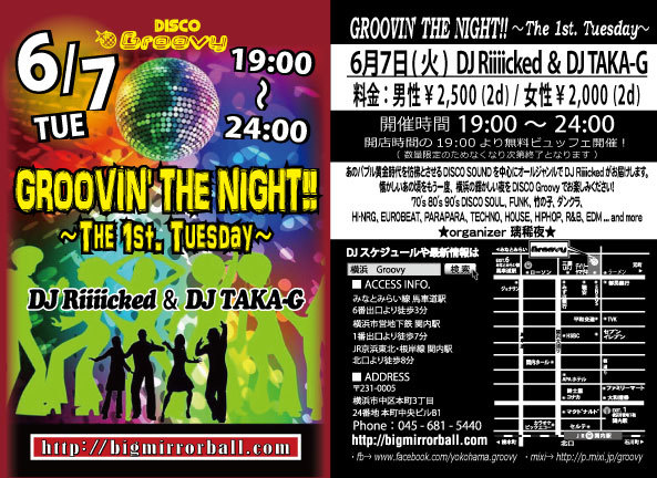 DISCO Groovy £¶·î¤ÎÂ裱²ÐÍËÆü¤Ï¡ª¥Ð¥Ö¥ë²«¶â»þÂå¤ò×Ç×ʤȤµ¤»¤ëDISCO SOUND¤òÃæ¿´¤Ë¥ª¡¼¥ë¥¸¥ã¥ó¥ë¤ÇDJ Riiiicked¤¬¤ªÆÏ¤±¤·¤Þ¤¹¡£²û¤«¤·¤¤¤¢¤Îº¢¤ò¤â¤¦°ìÅÙ¡¢²£Éͤ層«¤·¤¤Ìë¤òDISCO Groovy¤Ç¤ª³Ú¤·¤ß¤¯¤À¤µ¤¤¡ª ¡Ú¥¸¥ã¥ó¥ë¡Û 70's 80's 90's DISCO¡¢ SOUL¡¢ FUNK¡¢Ãݤλҡ¢ ¥À¥ó¥¯¥é¡¢ HI-NRG¡¢ EUROBEAT¡¢ PARAPARA¡¢ TECHNO¡¢ HOUSE¡¢ HIPHOP¡¢ R&B¡¢ EDM¡¢...andmore ¡ÚDJ's¡Û Riiiicked / TAKA-G ¡Ú³«ºÅ»þ´Ö¡Û 19:00¡Á24:00 ¡ÚÎÁ¶â¡Û ÃËÀ¡§¡ï2,500/2Drinks¡Ü¥Ó¥å¥Ã¥Õ¥§ ½÷À¡§¡ï2,000/2Drinks¡Ü¥Ó¥å¥Ã¥Õ¥§ ¡Ê¥Ó¥å¥Ã¥Õ¥§¤Ï