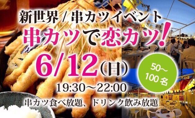 通天閣のある新世界の有名なお店の屋上を特別に貸切にしてビアガーデンを開催^_^ ビアガーデン、名物串カツで楽しめること間違いなし!! みんなで食べて飲んで楽しみましょう! 天王寺から10分とアクセスも抜群です♫ ■日時■ 6月12日【日】 OPEN 19:00 START 19:30 CLOSE 22:00 ■会場■ 新世界ビアガーデン串かつ横綱ガーデン 〒556-0002 大阪府大阪市浪速区恵美須東2-1-17 2F 動物園前駅1出口徒歩約3分 新今宮駅東口出口徒歩約5分 ■形式■ ・基本的に着席型 ・串カツ&ドリンク飲み放題 ■参加定員■ 先着80名