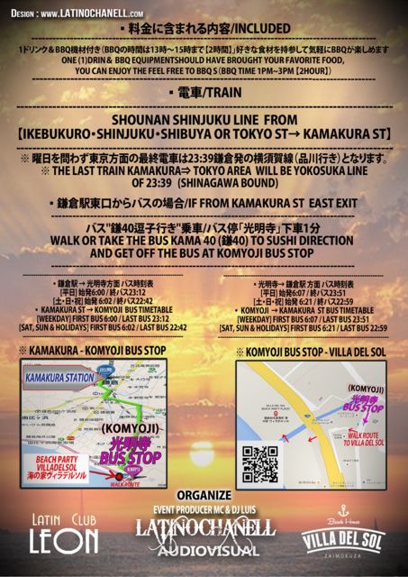BEACH SALSA LATIN CRAZY 3DAYS 1pm¡Á8pm ¥Ó¡¼¥Á¥µ¥ë¥µ¥é¡É¥Æ¥ó¥¯¥ì¥¤¥¸¡¼¥Ä¥ê¡¼¥Ç¥¤¥º¡É13:00¡Á20:00 ¡ú³ùÁÒ»ÔºàÌں³¤´ß³¤¤Î²È¥ô¥£¥é¥Ç¥ë¥½¥ë¡ÊVILLA DEL SOL BEACH HOUSE) ¢¨ÃÏ¿Þ/MAP : https://goo.gl/maps/8fqJU7Dbxdu ¡úÁ°Çä¤ê¡§2,000/ 1¥É¥ê¥ó¥¯¡õBBQµ¡ºàÉÕ¤¡£ ¡Ê¹¥¤¤Ê¿©ºà»ý»²¤·¤Æµ¤·Ú¤ËBBQ¤¬³Ú¤·¤á¤Þ¤¹¡¢13»þ¡Á15»þ¡Ë ¡úÅöÆü¡§¡ï2,500/ 1¥É¥ê¥ó¥¯¡õBBQµ¡ºàÉÕ¤¡£ ¡Ê¹¥¤¤Ê¿©ºà»ý»²¤·¤Æµ¤·Ú¤ËBBQ¤¬³Ú¤·¤á¤Þ¤¹¡¢13»þ¡Á15»þ¡Ë ¡úÂè1 7·î10Æü¡ÊÆü¡Ë13¡§00¡Á¡¡ ¡úÂè2 7·î31Æü¡ÊÆü¡Ë13¡§00¡Á ¡úÂè3 8·î20Æü¡ÊÅÚ¡Ë13¡§0